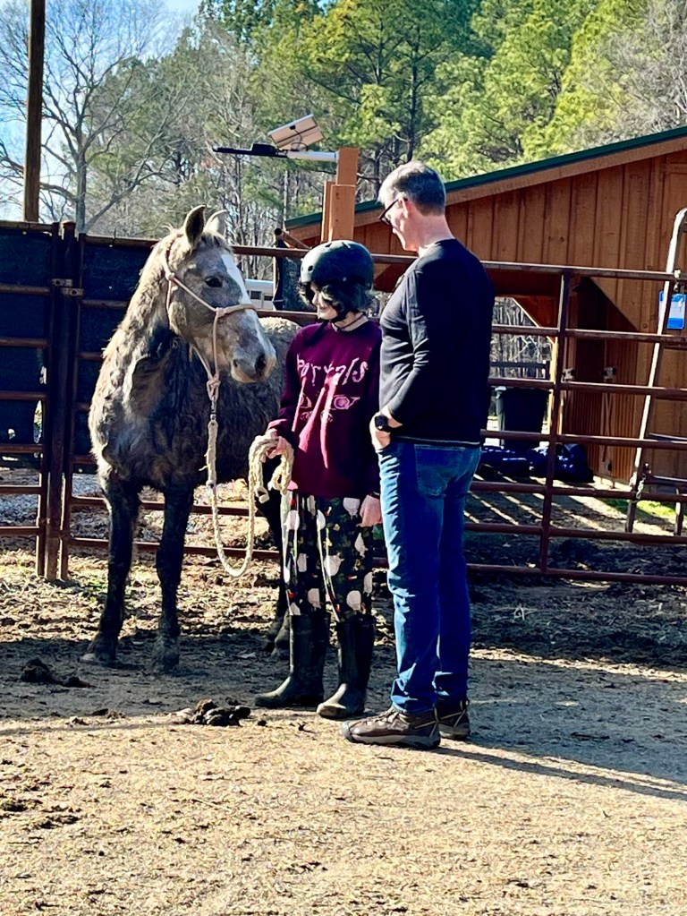 Kyl got to get in the ring and work with Bones, the wild mustang. Bones knows Ella and they have developed trust, which was so cool to see.