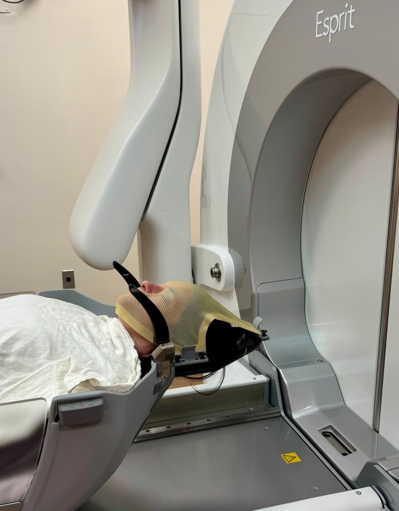 One cool thing I learned is that if my head moves even the tiniest bit, the machine will stop. That’s amazing! They don’t want to damage any of the surrounding tissue – which I greatly appreciate. That’s why the mask is so important.